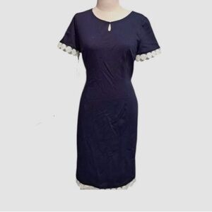 Talbots Navy Blue Scallop Eyelet Trim Dress Size 8P Career Office Classic