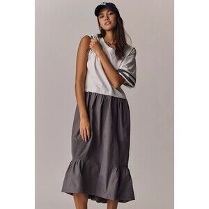 Daily Practice Anthropologie Striped Print Maxi Shirt Dress Ivory S New 285388