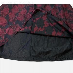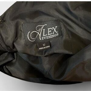 Charming Women formal dress by Alex Evenings. Features a beautiful black and red floral design. Perfect for special occasions.