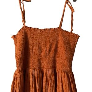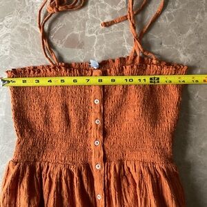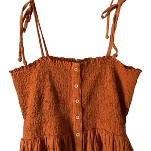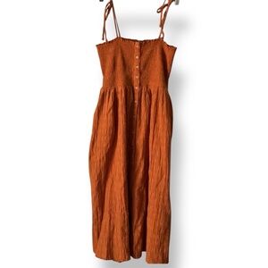 Aerie Rust Orange Smocked Button Front Tie Up Straps Midi Sun Dress Size Medium
