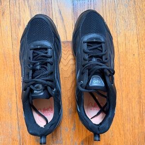 Sleek Rykä athletic shoes for women. Black and gray design. Ideal for workouts and casual wear.