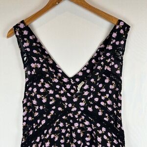 Keywords: Free People, mini dress, floral dress, black dress, sleeveless dress, ruffle hem, boho dress, summer dress, casual dress, party dress, v neck, lace detail, intimately, new with tags, whimsigoth