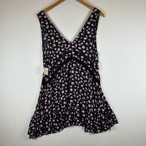 NWT Free People Intimately Floral Black Mini Dress Sleeveless Ruffle Hem S
