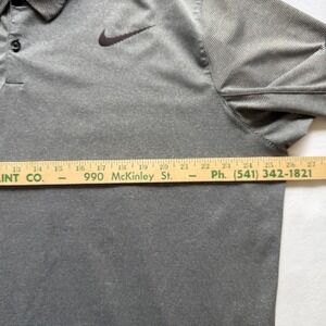 Lightweight Nike Golf polo with thin black and white stripes. Short sleeve with Nike logo on chest, standard fit. Vented neck. Men's XXL. Excellent condition - no noted flaws.