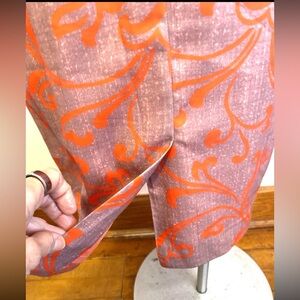 Anthropologie Beguile Byron Lars presents a stunning sleeveless sheath dress in a unique blend of gray, orange, and pink floral pattern. The dress features a boat neck, draped accents, and a side zipper for easy wear. It's perfect for various occasions such as travel, weddings, parties, or even casual outings.