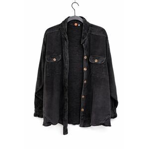 Free People FP One waffle knit utility jacket in a washed black/charcoal tone with a perfectly worn-in look. Features a textured knit body, button-front closure, and chest flap pockets for a relaxed, lagenlook, layered feel. Size M. Very oversized, fits up to L/XL.