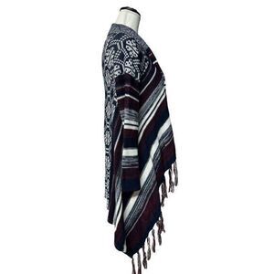 Hooked Up Flyaway Cardigan Small Indigo Red Striped Tassels Knit Long Sleeve M