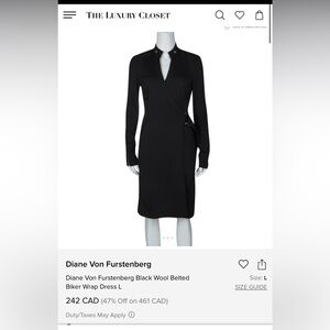 Gorgeous military chic by DVF. 100% wool. Chic black dress with wrap design. Long sleeves for elegant style. The epitome of elegance and fashion. Perfect for versatile occasions. Has pockets. Gorgeous details on sleeves and shoulders. A showstopper.
