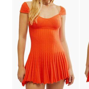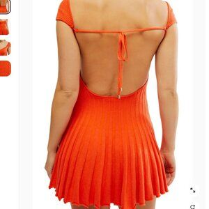 New Free People Cherie Tie Back Knit Mini Dress Size Medium Orange Red