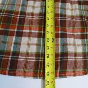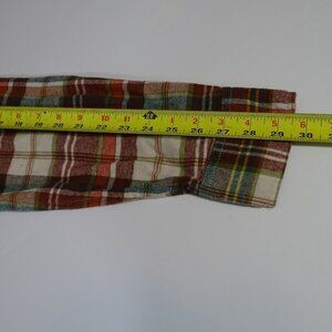 Eddie Bauer Plaid Button Up Burgundy Red, Green, Cream Plaid Flannel Shirt