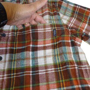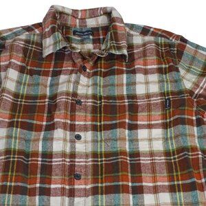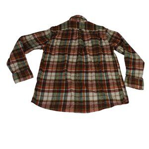Eddie Bauer Men Plaid Button Up Plaid Flannel Shirt Red Green Cream Size L
