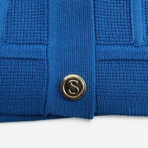 Features: Structured Knit, Cropped Silhouette, "S" Monogrammed Snaps
