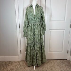 ASOS Design Sage Green Floral Lace Maxi Dress Boho Romantic Ethereal US 8