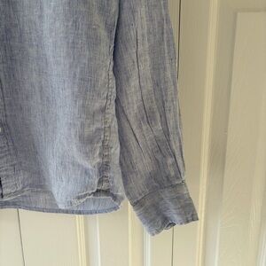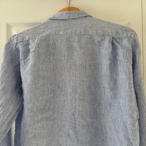 Light blue button-down shirt by Muji. Simple and elegant design. 100% Linen.