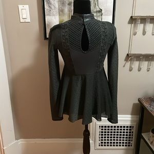 Free People Charcoal Textured Long Sleeve Blouse