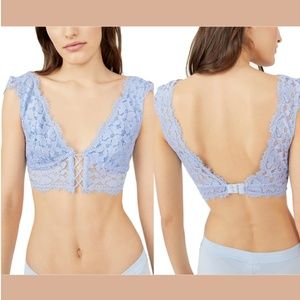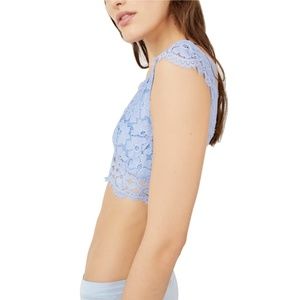 NWT $48 Free People In Clouds Guipure Lace Longline Bra Blue #T1244a