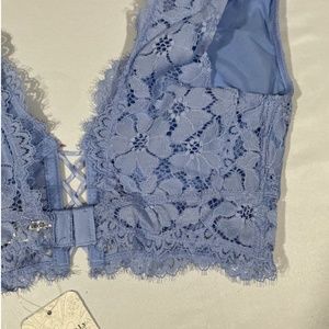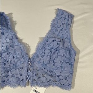 NWT‎ $48 Free People In Clouds Guipure Lace Longline Bra Blue