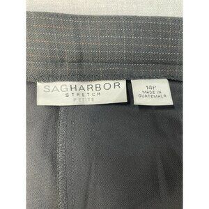 Pre-owned SAG Harbor women’s stretch dress pants in dark grey plaid. Classic straight leg design with a comfortable stretch fit, suitable for casual or formal wear.