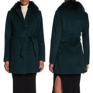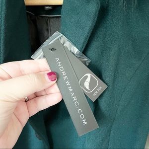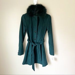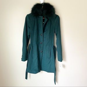 Andrew Marc Wool Blend Genuine Dyed Fox Fur Collar Coat Forest Green 4 NWT