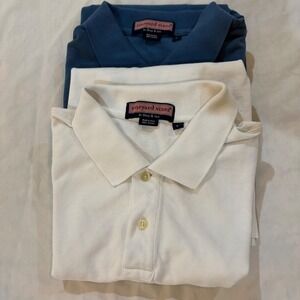Lot of 2 Vineyard Vines Mens Large Blue White Short Sleeve Polo Shirt Whale Logo