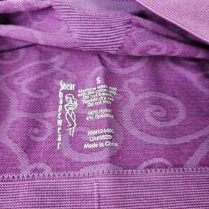 The Rhonda Shear Seamless Original Ahh Comfort Bra in size small is a purple swirl wireless bralette designed for women. Made from a nylon blend material, this pullover bra features a seamless construction for added comfort. Machine washable, this bra is easy to care for and perfect for everyday wear. The opaque design and one size cup make it a convenient and stylish choice for women looking for a comfortable and supportive bra.
