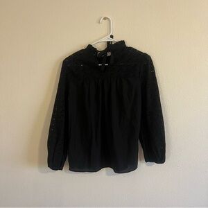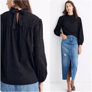 Madewell Pieced Eyelet Mockneck Ruffle Top
