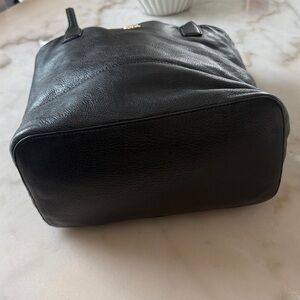 Tory Burch Michelle Leather Black Tote Bag Gold Logo