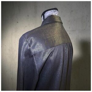 An elevated wardrobe essential from Chico’s, this blouse features a subtle iridescent finish that shifts beautifully under light.