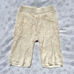 cream crochet, elastic waist, lined shorts, new with tags, minimalistic, summer chic, soft knit, fitted, casual yet stylish, relaxed fit