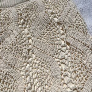 Helmut lang cream crochet shorts with elastic waistband. Lined so they’re not sheer. Brand new with tag. Size small fits around a 4/6. #crochetshorts #capris