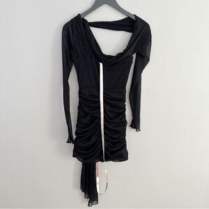 Gathered to flatter your figure, 'Santa' is the epitome of stylish dressing this party season. It's cut from stretch layered glitter mesh panels in an asymmetric silhouette and the daring cutouts add a little sex. We especially love the waterfall drape laver that drops down below the knee for an elegant finish.