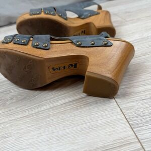 Korks Women's Leather Berengo Slingback Clog Sandals Wood Heel Blue Size 7M