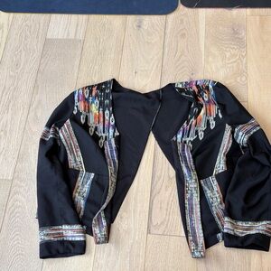Chic black blazer with vibrant multicolor accents. Ideal for a bold fashion statement.