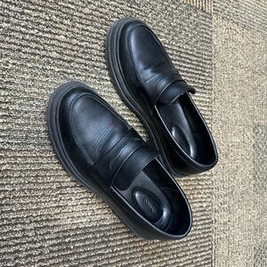 Stylish black loafers by Quince. Smooth leather finish. Perfect for everyday wear.