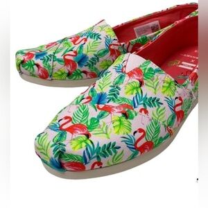 Toms Women’s Alpargata Pink Pearl Paper Source Flamingos Print Shoes Size 8 NWT