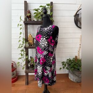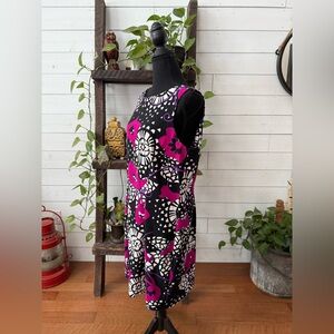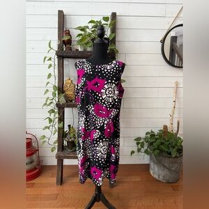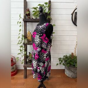 Dress Barn Floral Sleeveless Black, White, Pink and Purple Dress Size 16