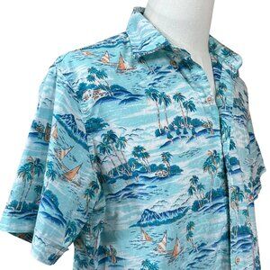 Izod Saltwater Men's Blue Hawaiian Short Sleeve Shirt Size L