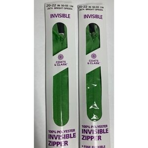 Coats Invisible Zipper 20" To 22" Bright Green F84/22-287A (Pack of 2) NEW