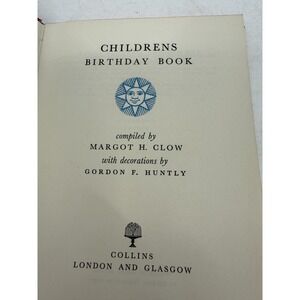 Vintage Children's Birthday Book by Margot H. Clow, published by Collins in 1958. Hardcover edition housed in its original decorative slipcase/box. A charming keepsake-style book with illustrations and birthday pages, perfect for collectors or gifting.