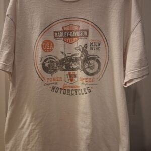 Bold motorcycle graphic on soft tee. Perfect for Harley enthusiasts.