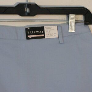 Fairway Golf & Resort skort in size 6. New with tags, excellent quality and style. Skirt with attached shorts, zip front close. Two nice sized flat pockets in front and two side seam pockets. Powder blue. Made from 95% polyester and 5% spandex, machine wash.
