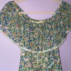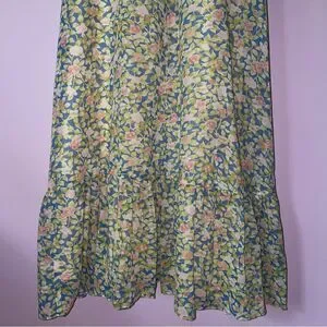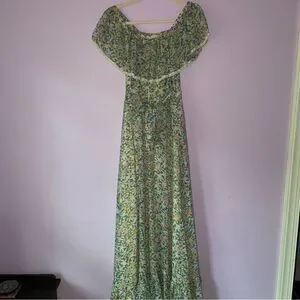 Camela of California S Maxi Dress 70s Ball Gown Blue Ditsy Floral Ruffle Boho