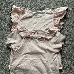 Gorgeous and girly tops from H&M in size 8/10. Soft blush pink color - one has ruffled sleeves, and the other has the sweetest sailor (?) collar with bow at the neck. Both in excellent condition.