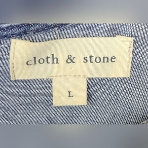 Stylish denim blouse. Features long sleeves. Frayed hem for a casual look.