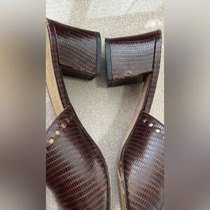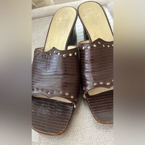 ✨Textured Brown leather Mules Spec Edition VTG sz 8 Scalloped Edge Slides