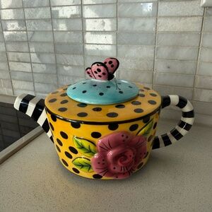 Style Tags: whimsical kitchen decor, statement teapot, kitsch homeware, giftable tea set, butterfly ceramic, art deco vibes, funky tea lover gift, polka dot teapot, tea party decor