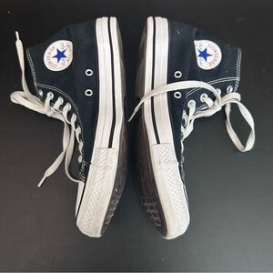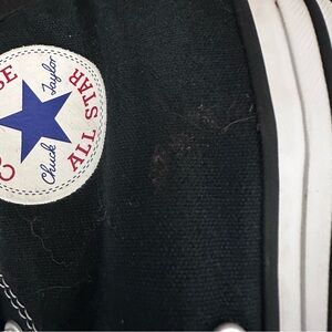 These black Converse All-Star Chuck Taylor high tops are a men’s size 8 and a woman’s size 10, they are in good preowned condition. There are a few flaws shown in photos… Cosmetic only. Please see photos as they are part of the description and show the wear and condition of the exact item you will receive. Questions? Leave a comment below!