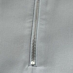 Chic gray dress featuring intricate embroidery.