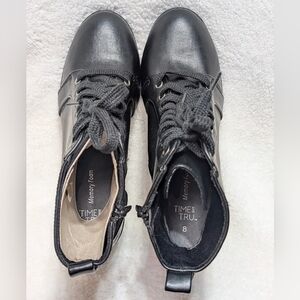 Time and Tru Women's 8 Black Lace-Up Zipper Boots Moto Combat Goth Biker