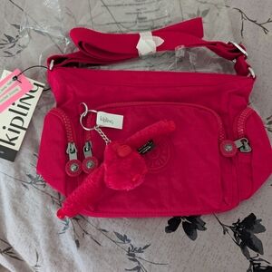 Stylish and functional, this Kipling crossbody bag in vibrant hot pink is perfect for everyday use. It's more of a hot pink then red, I hope it shows in the pics